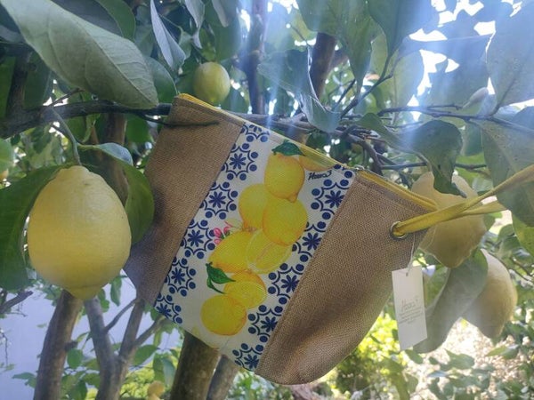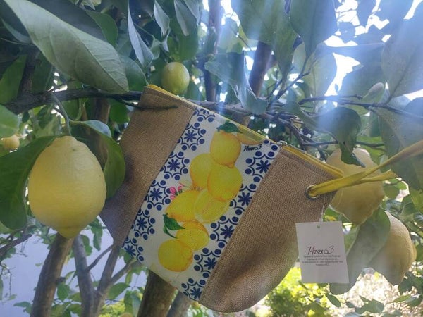 - Los tres neceseres comparten un estampado común de limones sobre 3 fondos diferentes: azul: patrón geométrico; blanco: patrón floral; verde: patrón sencillo.